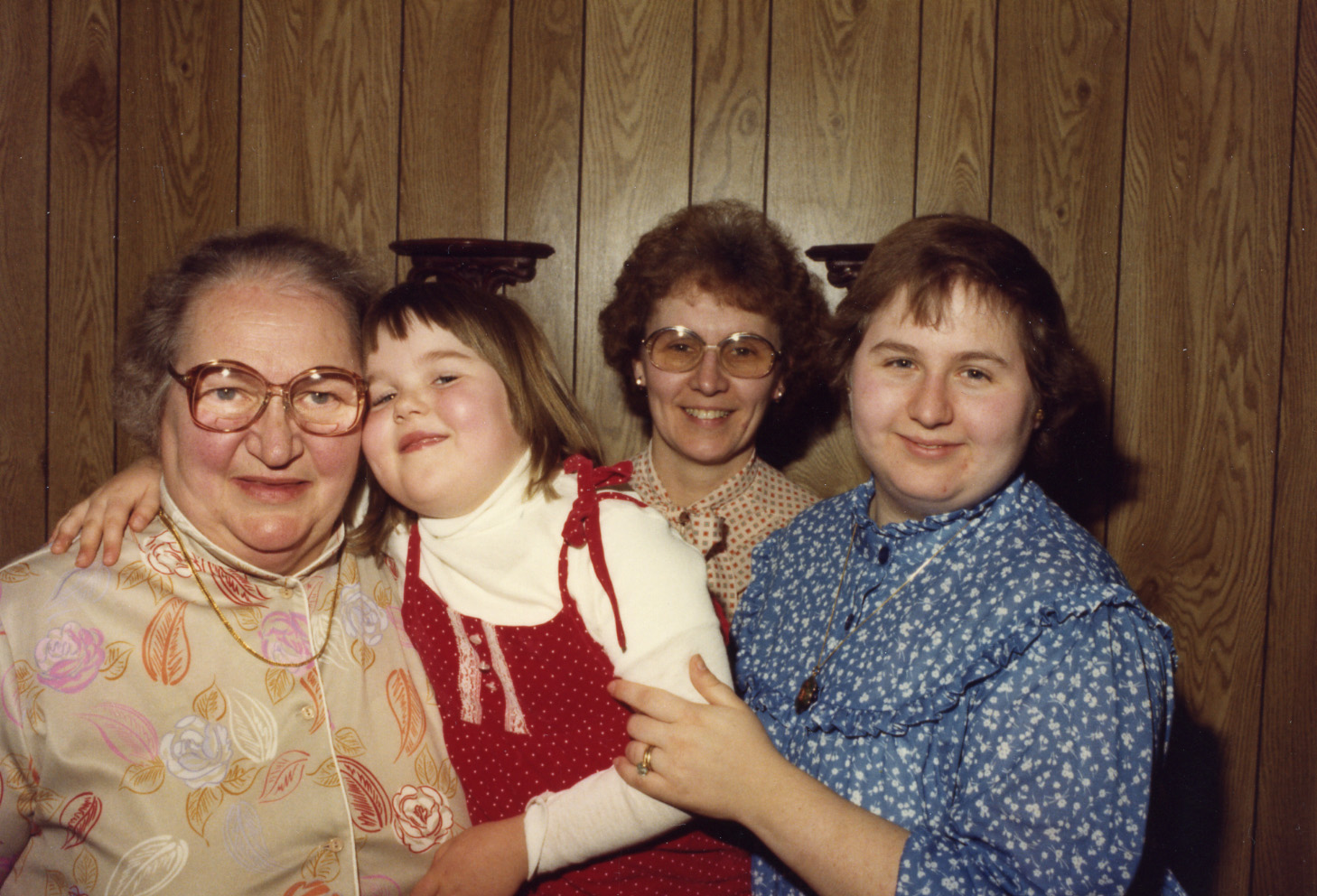 4 generations of head-strong, German women: Great Grandma (Bertie), me, Grandma (Audrey), and Mom |